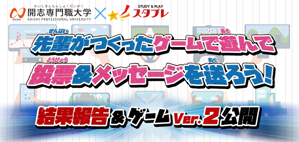 STAR Programming SCHOOLなどチアリーが運営する教室に通うおよそ2,300名の小中学生が利用できる会員サイト「スタプレ(Study & Play)」で、開志専門職大学の学生が開発したオリジナルゲームのベータ版を公開。学生は小中学生がゲームをプレイした感想や改善提案を参考にゲームを完成させました。