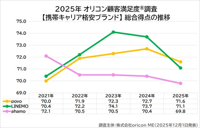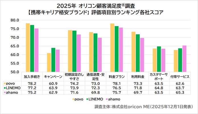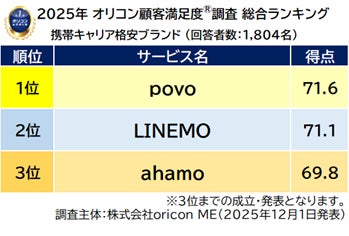 オリコン株式会社(本社:東京都港区 代表取締役社長:小池 恒、略称:オリコン)は、グループ会社である株式会社oricon MEが、実際のサービス利用者を対象に第三者の立場で実施した『携帯キャリア格安ブランド』の顧客満足度調査の結果を、2025年12月1日(月)14時に「オリコン顧客満足度®」公式サイト内にて発表いたしました。