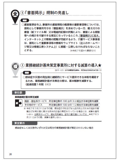 アイコンでサービス別に改定項目を分類しているから、自分の事業所に関連のある改正がすぐに見つかる!