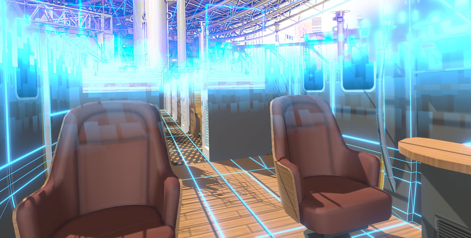 AR体験スポット③のJR大阪駅うめきた地下口では、「WEST EXPRESS 銀河」をオマージュした椅子※を使って「WEST EXPRESS 銀河」にご乗車いただきます。列車の座席にお座りいただくと、幻想的な列車の旅にお連れします。列車に乗車しながら車窓から見える非日常の情景をお楽しみください!どんな景色を見ることができるかは乗ってからのお楽しみ。