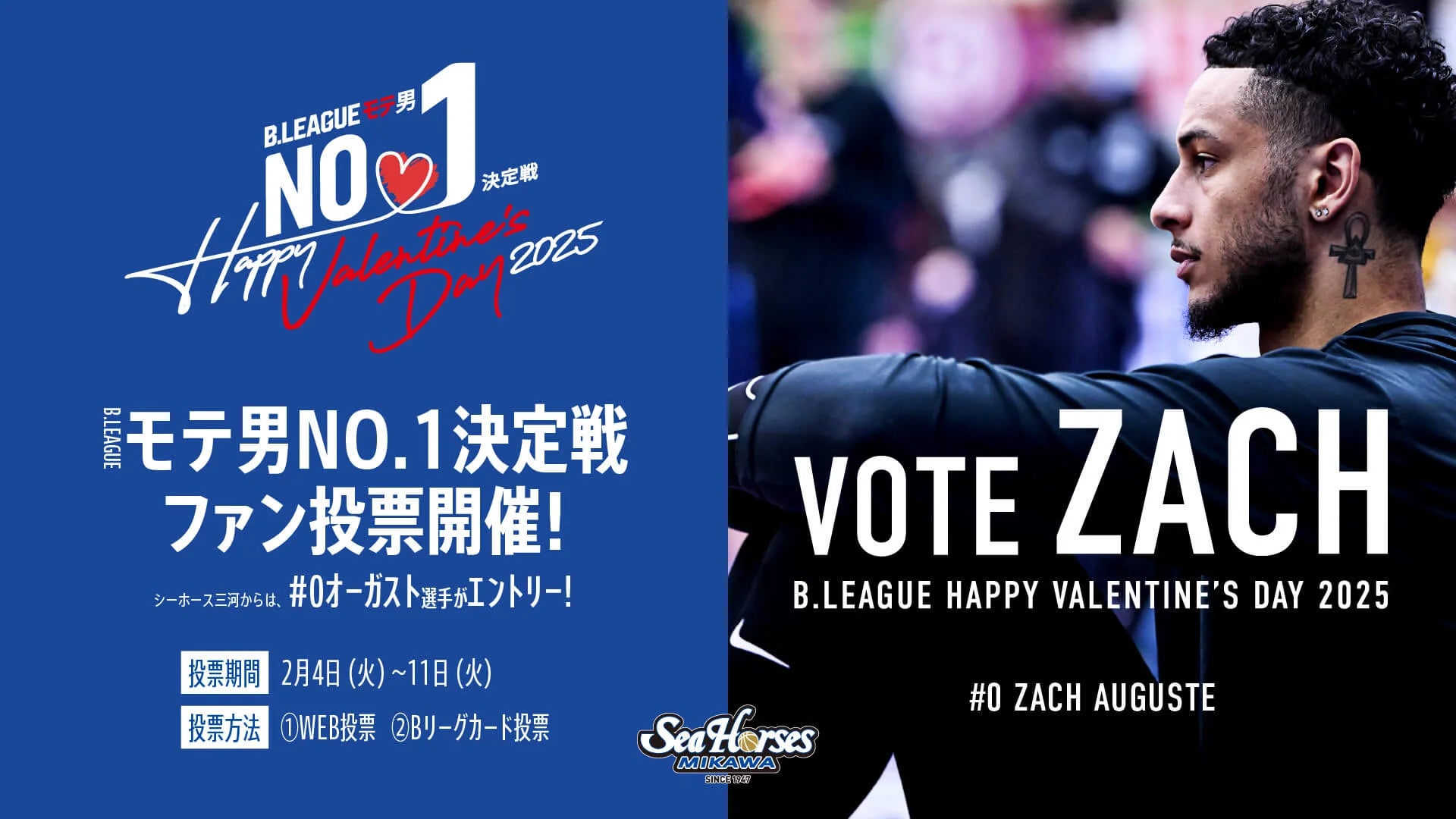シーホース三河からは昨年開催した「シーホース三河 モテ男No.1決定戦 2025」で1位に輝いた#0 ザック・オーガスト選手がエントリーします!!