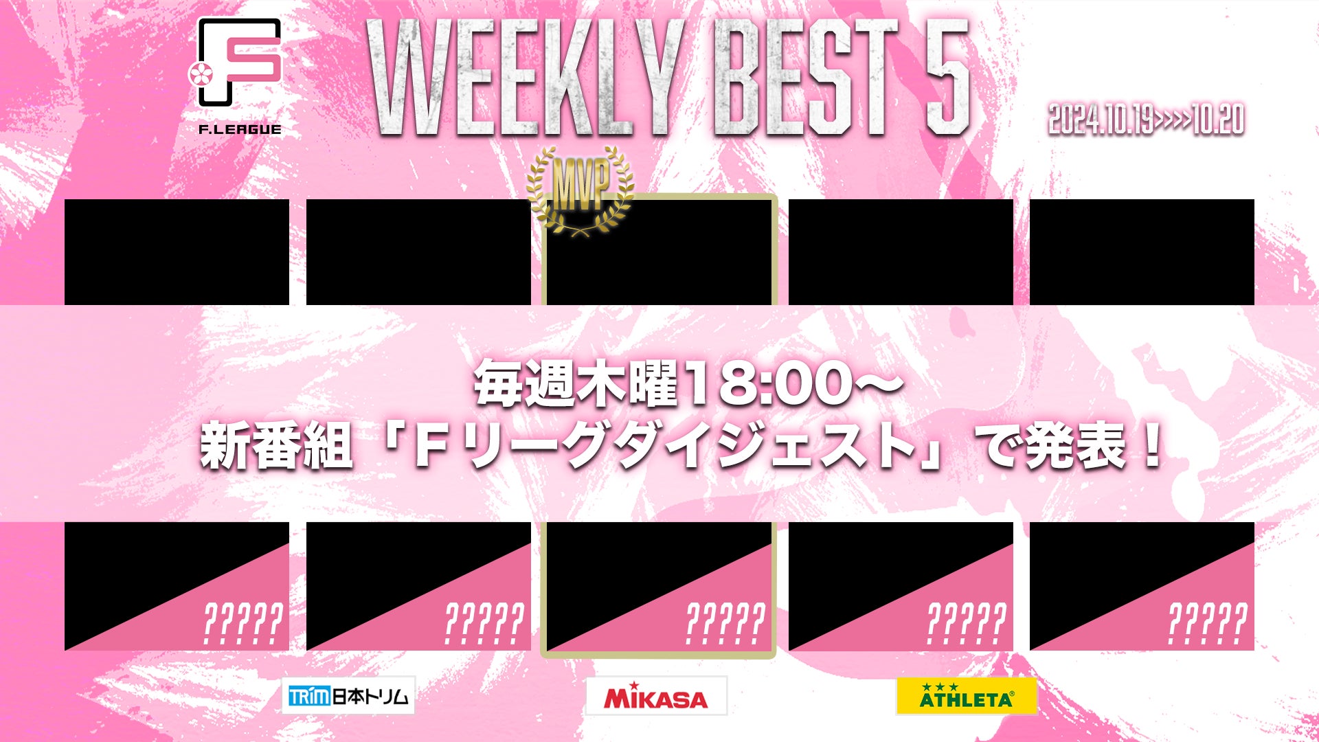 ベスト5は、10月17日(木)18:00スタート FリーグTV新番組「Fリーグダイジェスト」にて発表いたします。