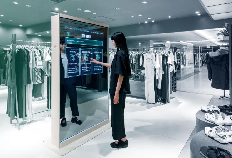 「本当の似合う」が見つかるというコンセプトでさまざまな診断を搭載した体験型ミラーです。骨格ボディタイプ診断に加え、フェイス・パーソナルカラー診断やファッションタイプ診断が可能です。