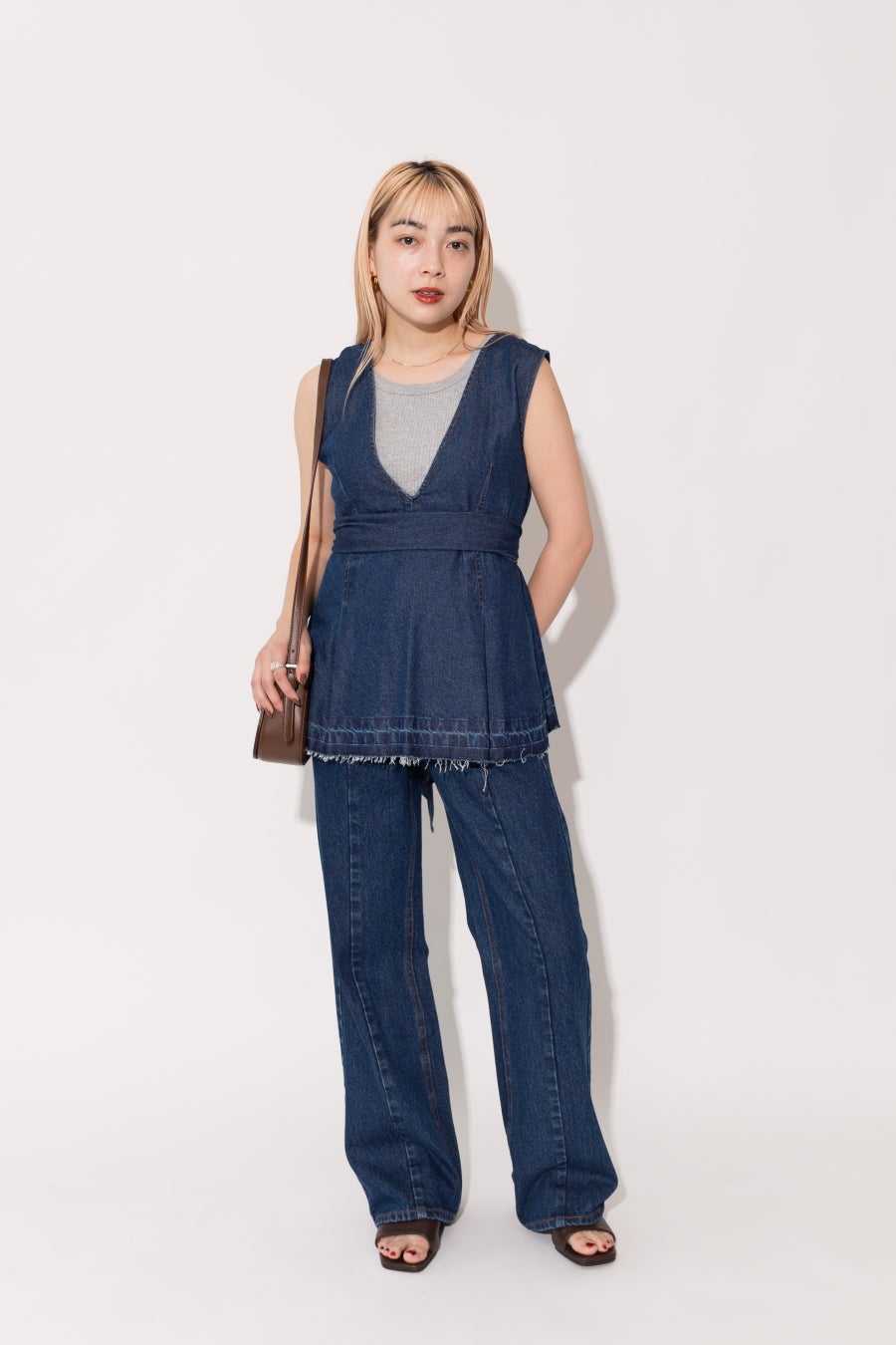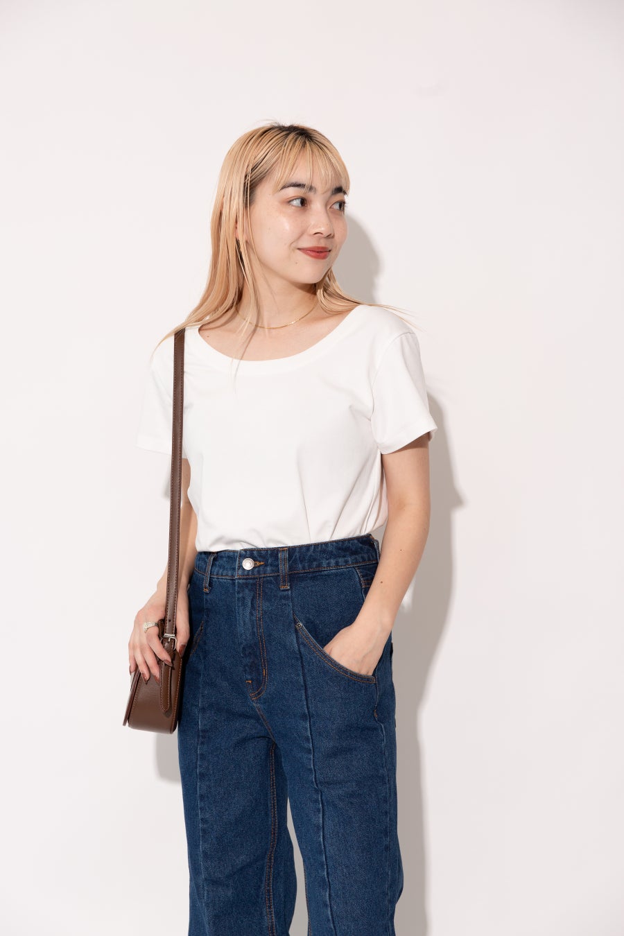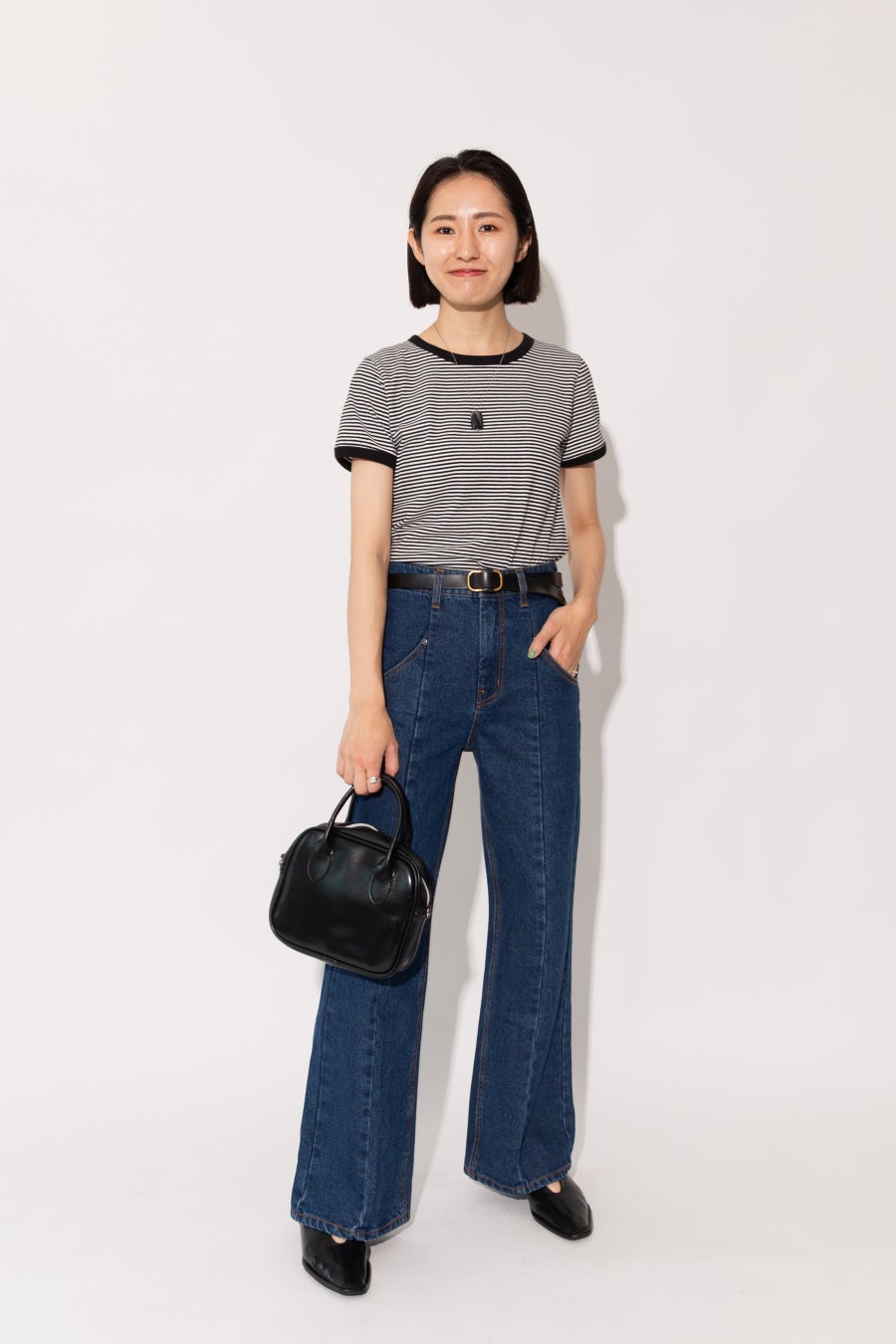 →デニムトップスと合わせた時も細見えシルエットになるようにミリ単位で調整しています。