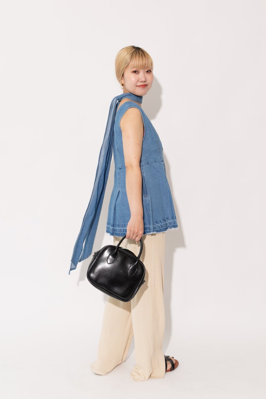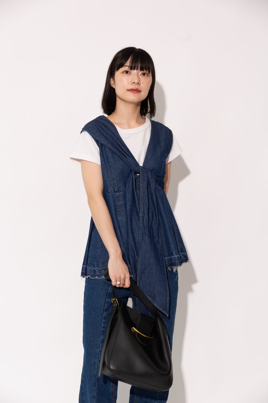 →短めの首や厚みのあるデコルテをすっきり見せ、上半身をスッキリと抜け感を演出(首が長めの方にも前後着用で詰まり気味にもアレンジ可能)