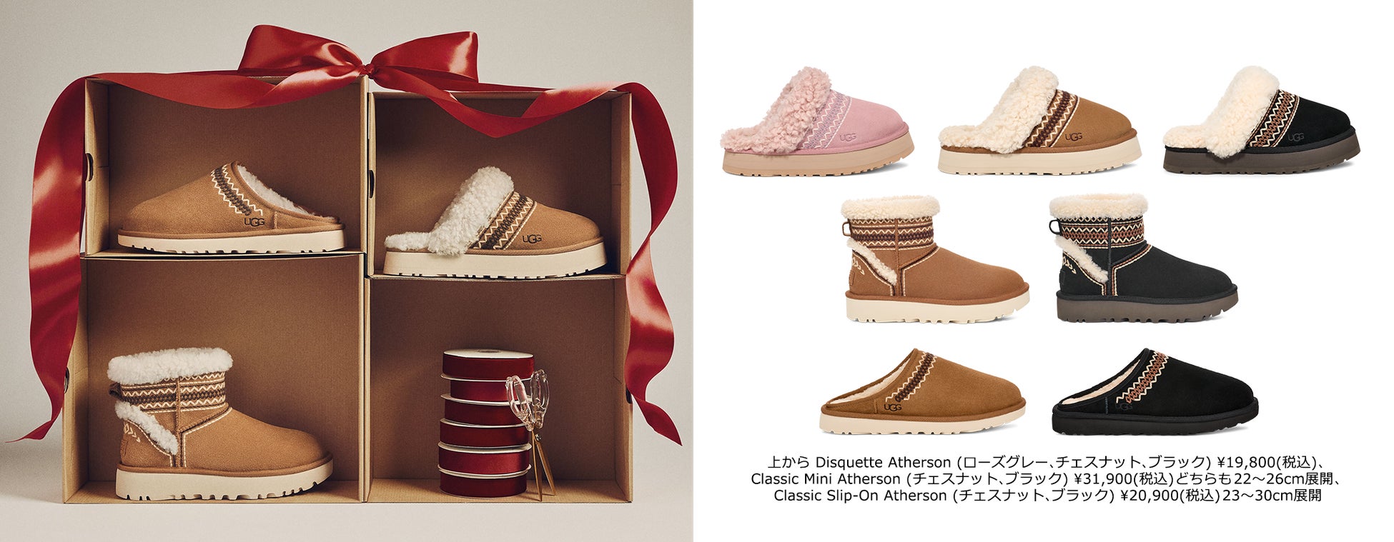 Tokyo ( 2024年11月13日) – 南カリフォルニアを拠点とするグローバルライフスタイルブランドのUGG (a division of Deckers Brands [NYSE: DECK])は、これから迎えるホリデーシーズンを彩るUGGの2024年Holiday Collection (ホリデー コレクション)を発表します。美しいハンドステッチのディテールやカーリーシープスキンがアイコニックな3つのスタイルで新登場。他にも自分へのご褒美やホリデーシーズンのギフトとして、恋人、友達、家族など大切な人に贈りたくなるトレンドのアイテムから、コンフォートな定番アイテムまで、今シーズンは「Unbox Joy - ギフトをあげる楽しみ!あける喜び!」をテーマにキャンペーンクリエイティブを展開します。是非UGG公式サイト( https://bit.ly/3YN6t4N )にてフルラインナップをチェックしてみてください。