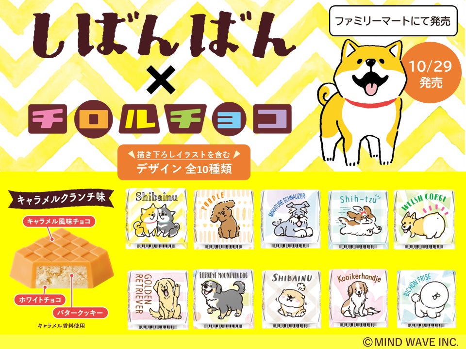 11月1日は犬の日♪可愛い柴犬のキャラクター“しばんばん”とコラボ♪♪「チロルチョコ〈しばんばん キャラメルクランチ〉」全国のファミリーマートで新発売!