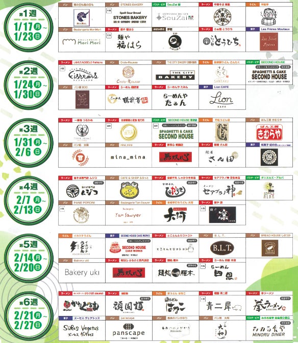※店舗を12グループに分け、一週間ごとに各店舗で開発した商品やメニューを消費者へ販売提供