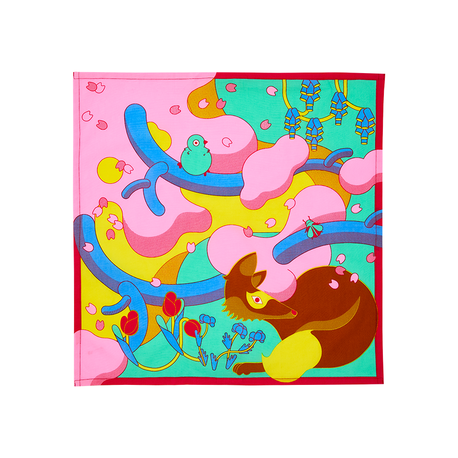 風呂敷をヒントに生まれた、何度も繰り返し使える数量限定のギフトラッピング用商品です。鳥がさえずり、動物が目覚める森があなたの大切な人に春の訪れを告げます。これから始まる素敵なことが花開きますように。