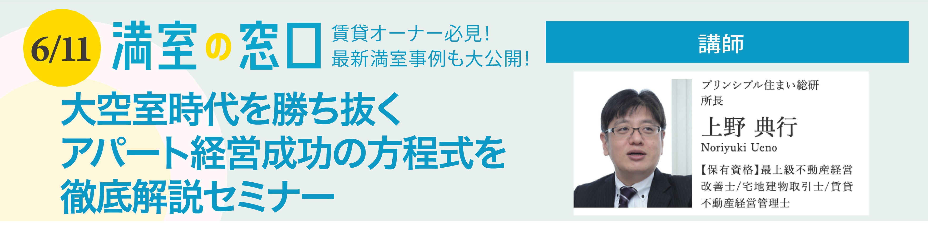 賃貸オーナー必見!!最新の顧客動向を解説 「大空室時代を勝ち抜く アパート経営成功の方程式を徹底解説セミナー」6/11(土)オンライン開催