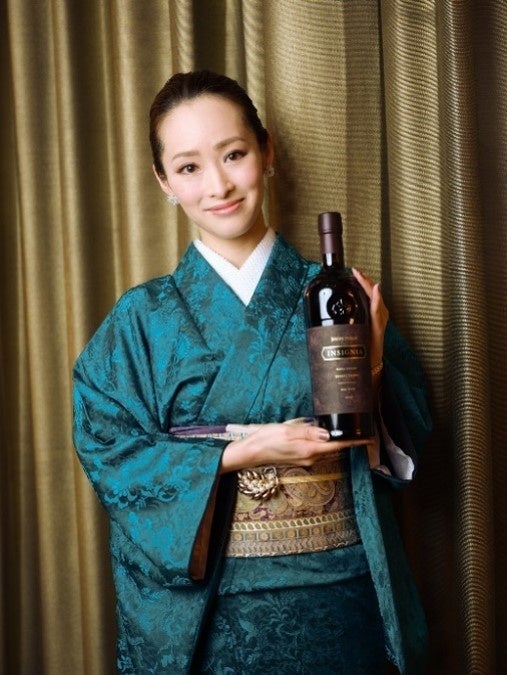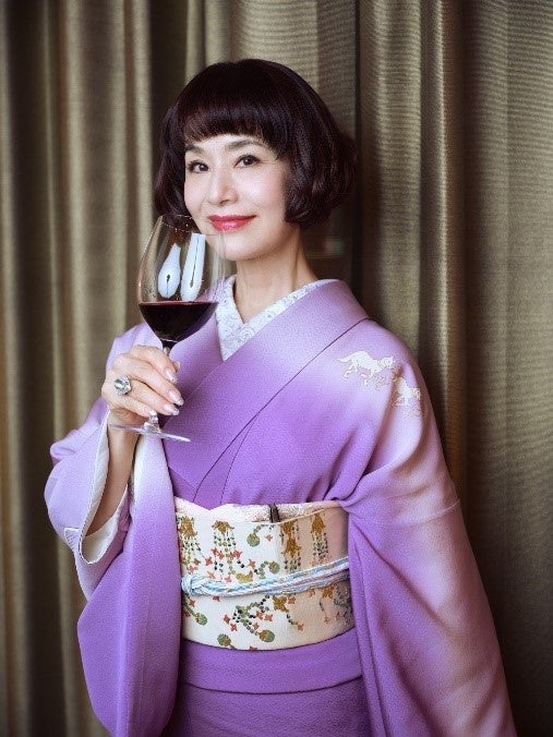 バーガンディー色に染まったジョセフ フェルプス ヴィンヤーズのワインのイメージに合わせて、薄紫色の留袖に春らしく小花が冠のように彩られた千代冠の帯をコーディネートしました。「カベルネ ソーヴィニヨン 2021」のフルーティーさとほんのりスパイシーさが加わった香りが忘れられません。「インシグニア 2019」はさらに余韻と複雑さ、女性らしさが感じられるとてもエレガントなワインだと感じました。