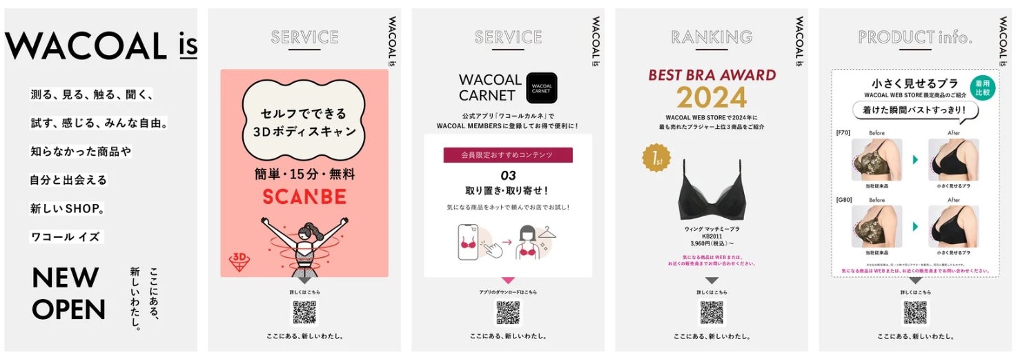 ワコールではこれまでも店舗について、「SCANBE」の体験や店頭販売員との対話を通して自分のからだや下着について知り、相談できる場所であること、「ブラリサイクル」で不要になったブラジャーを預けることができる場所であることなど、お客さまがお気軽に来店していただけるよう様々な取り組みを発信しておりますが、従来の店舗は“下着を購入する場所”としてのイメージが強く、“下着売場への来店”自体がハードルになっているのではないかと考えています。