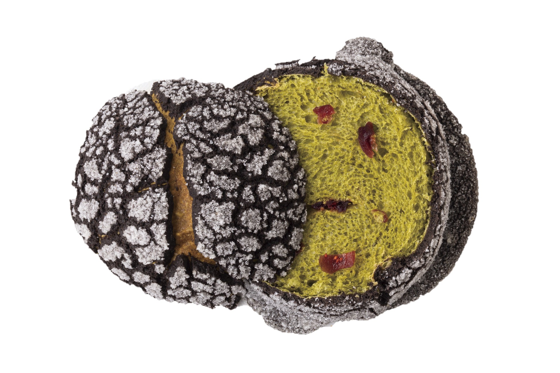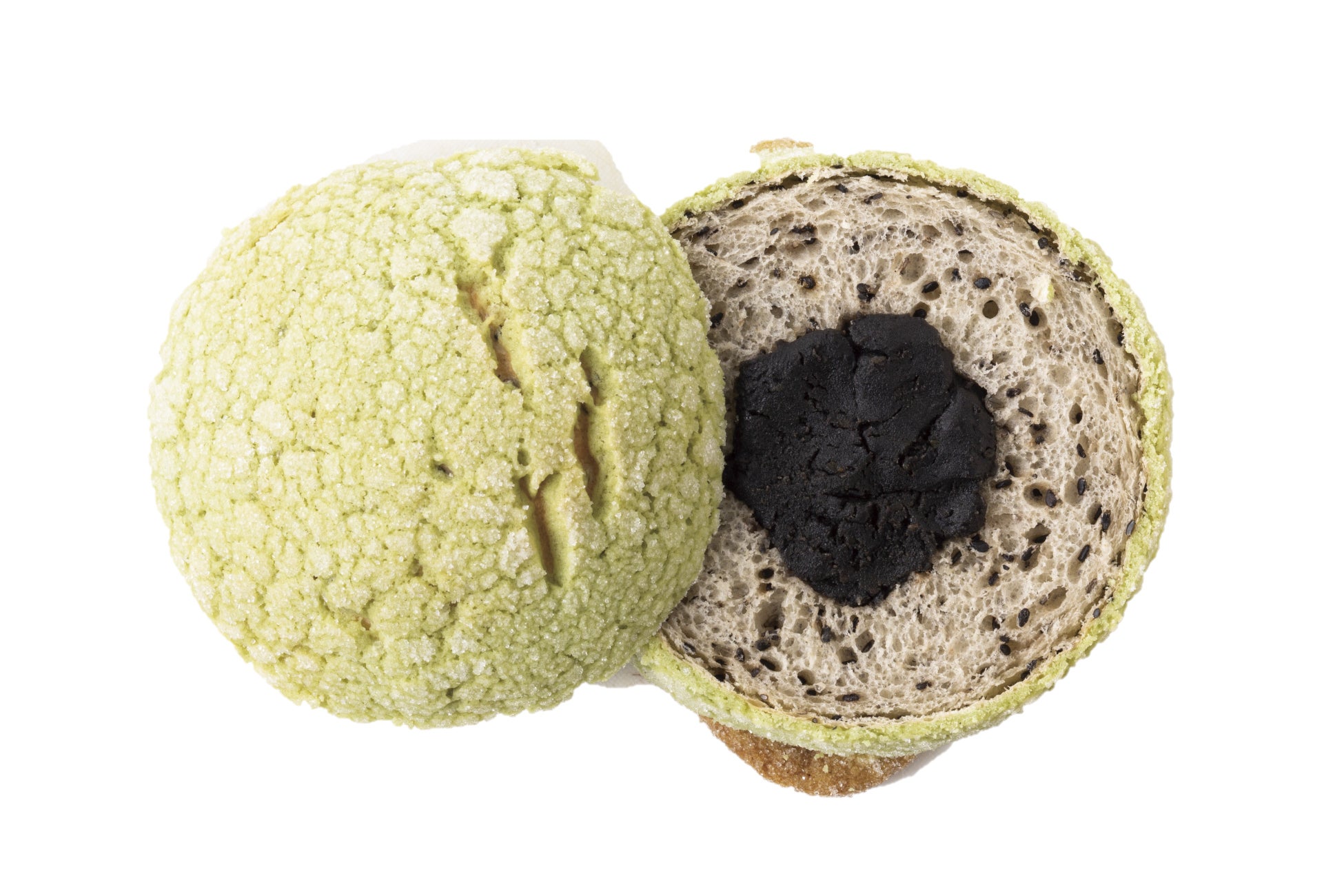 5月15日(月)から発売をする『こめろんぱん』も米粉を使用したメロンパン。米粉を使うことにより、外はホロっとさっくり、中はしっとりもちもち。「カスタードメロン」、「抹茶黒胡麻メロン」、「チャイラテメロン」、「レーズンパイメロン」など、色と味で選べる6種類をご用意いたしました。真っ黒のメロンパン「漆黒の抹茶クランベリーメロン」は、一口食べると抹茶味のパンと甘酸っぱいクランベリーが出てくる、驚きのメロンパン。直径が13cmと大き目サイズ。米粉パンの優しい味わいや食感をお楽しみください。