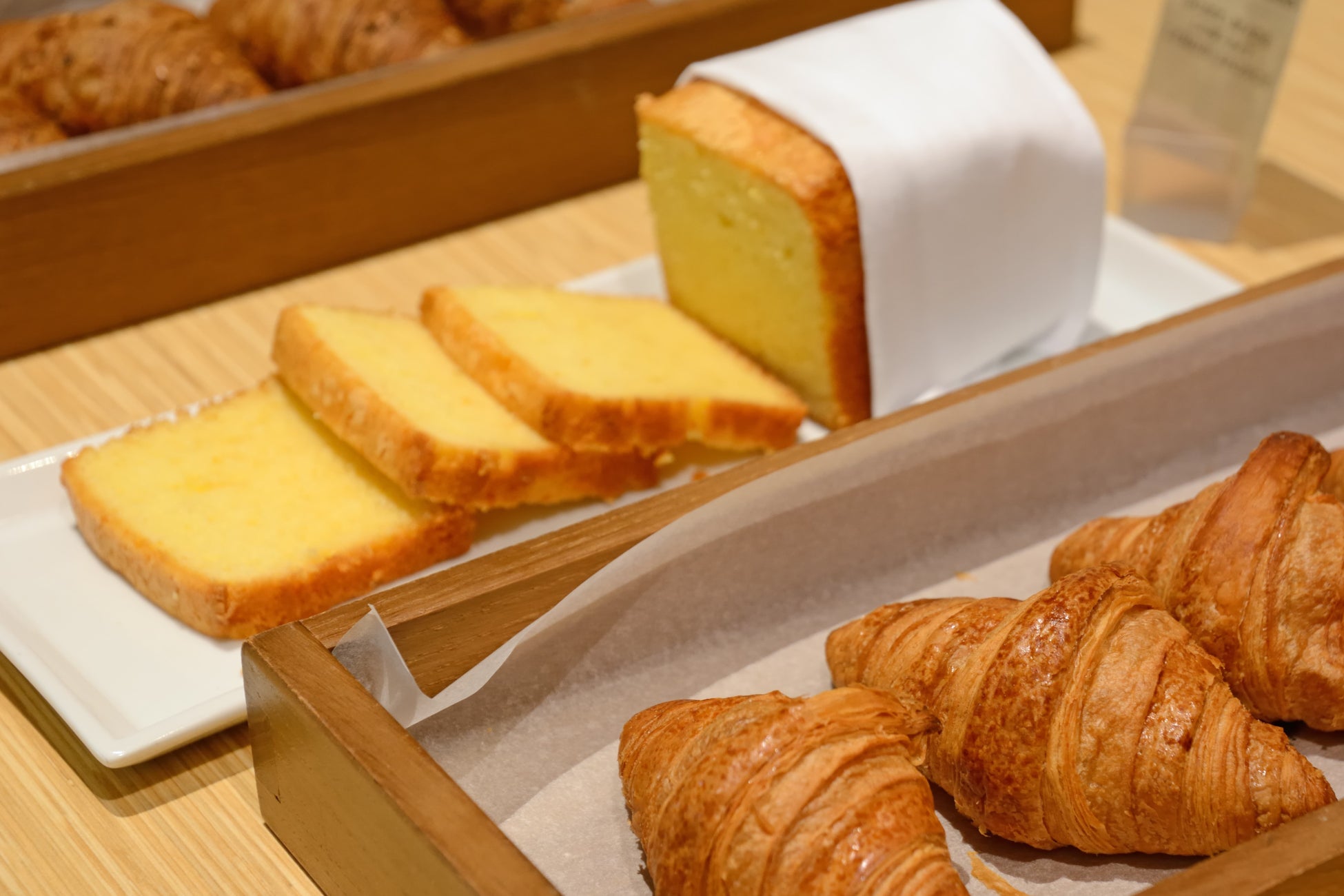 平日ランチタイムには品川の近隣オフィスにお勤めのお客さまをはじめ、多くの常連さまにご利用いただいております。「限られた休息時間の中で活力をつけていただきたい」そんな思いから、ランチメニューご注文のお客さまに 4 種のパンビュッフェをセットでご提供いたします。