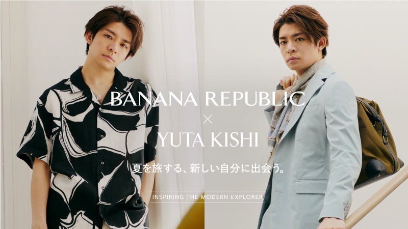 岸優太さんは「バナナ・リパブリックのSummerコレクションは、軽やかな素材や様々なシーンで着られる上質なアイテムが豊富なので、そこが本当に魅力だと思います。夏の旅先はリラックスした空間と時間を味わって、自然の中でチル感を味わいたいですね」とコメントしています。