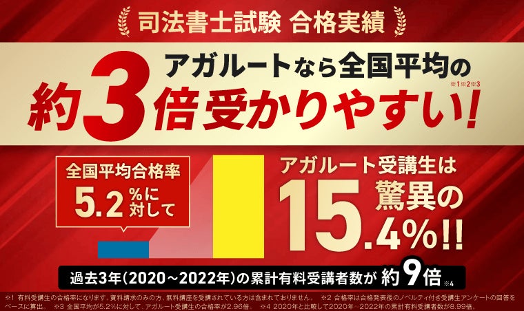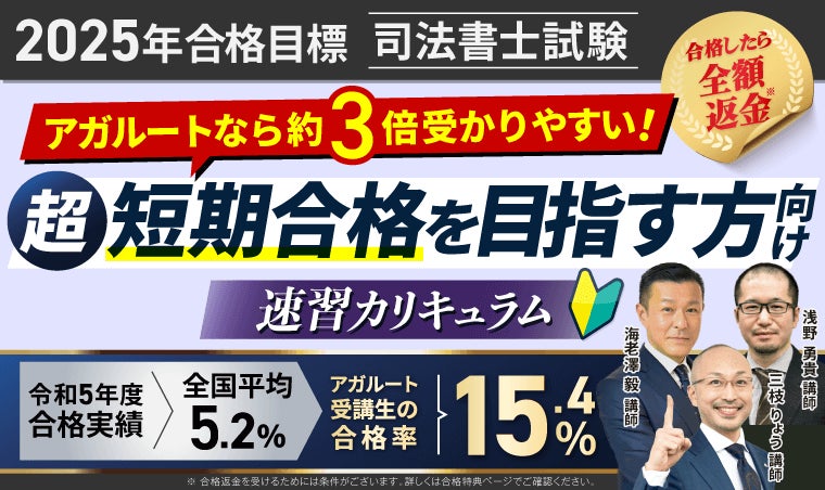 株式会社アガルート(本社:東京都新宿区、代表取締役:岩崎 北斗、以下「アガルート」)が運営する「アガルートアカデミー」は、【2025年合格目標】司法書士試験速習カリキュラムをリリースいたしました。
