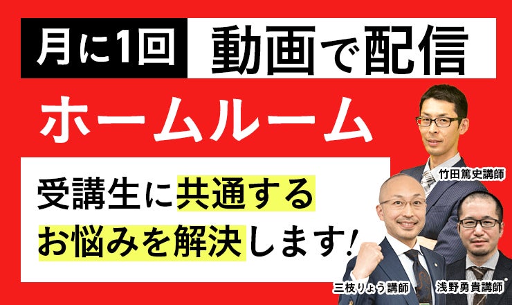 毎月のアンケート(勉強方法と学習内容)をベースに浅野講師・三枝講師・竹田講師がお届けする毎月の動画コンテンツです。みなさんのお悩みを解消するとともに改正法に関する情報もお届けします!モチベーション維持やペースメーカーにご利用ください。