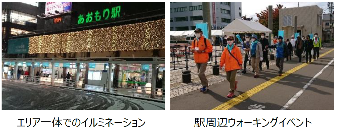 連携協定をきっかけにして青森駅周辺で行われていた駅まつりや地域イベントの開催時期を合わせ、情報発信を一体的に行い共同スタンプラリーを開催するなど、エリアの魅力向上を図っています。県内からの来街者だけではなく、県外に青森の魅力を広くアピールする場を目指しています。