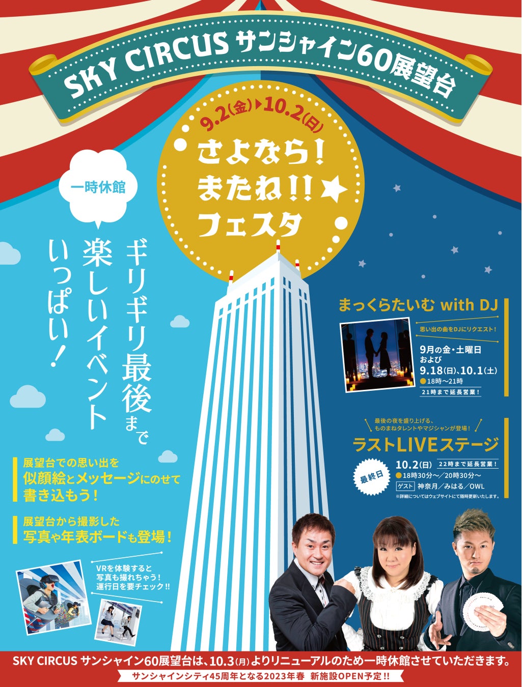 SKY CIRCUS サンシャイン60展望台 さよなら!またね!!フェスタ 開催【9月2日(金)~10月2日(日)】