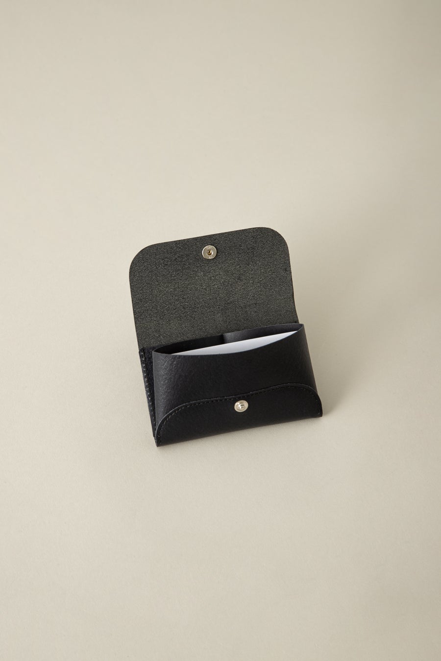 本体のポケット部分には蛇腹構造を採用し、フラップを開けると自然にポケットが広がる仕様に。名刺約25枚が収納でき、視認性・取り出しやすさに優れた設計です。日々のビジネスシーンでのストレスを軽減するユーティリティ性にもこだわりました。