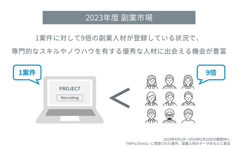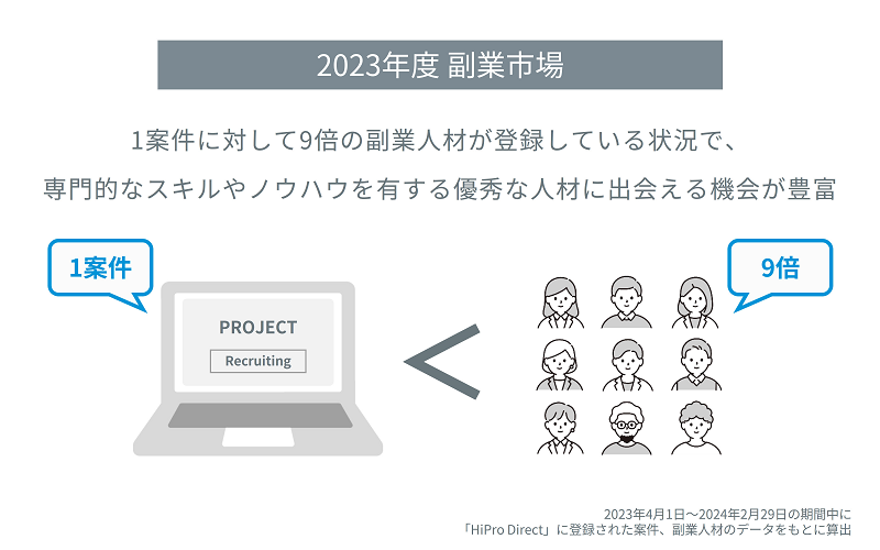 2023年4月1日~2024年2月29日時点の期間中に「HiPro Direct」に登録された案件、副業人材のデータをもとに算出