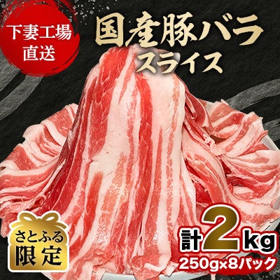 【さとふる限定】国産豚バラスライス 計2kg(250g×8パック)〔下妻工場直送〕