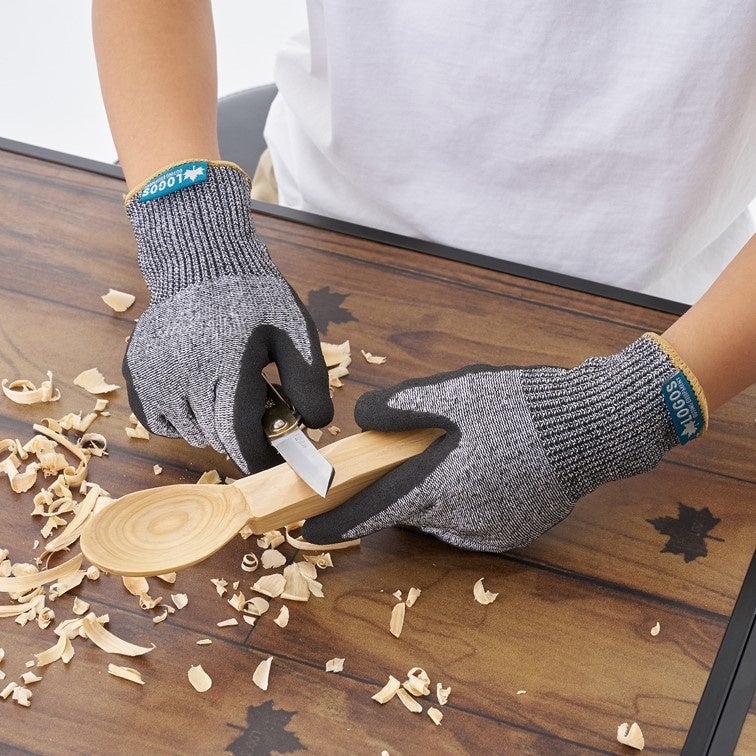 工場などで採用されている基準で最高水準の「耐切創レベル5C(EN388:2016)」をクリアした安全性の高いグローブで、刃物を使用した細かい作業も安心。