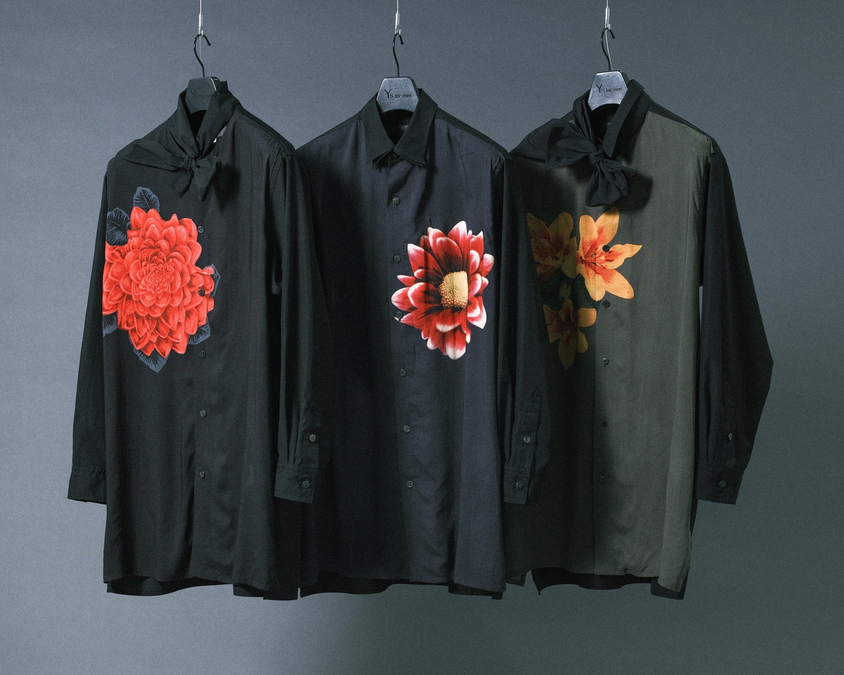 今回のPOP-UP STOREでは、Y’s for men 2005-06A/Wの花柄プリントのアイテムを再構築し、ダリヤ、ポピー、ユリをモチーフとした3種類の花柄プリントを施した新作アイテムを先行販売いたします。これらの花々は布に静かに力強く宿り、服と調和しながら存在感を際立たせます。