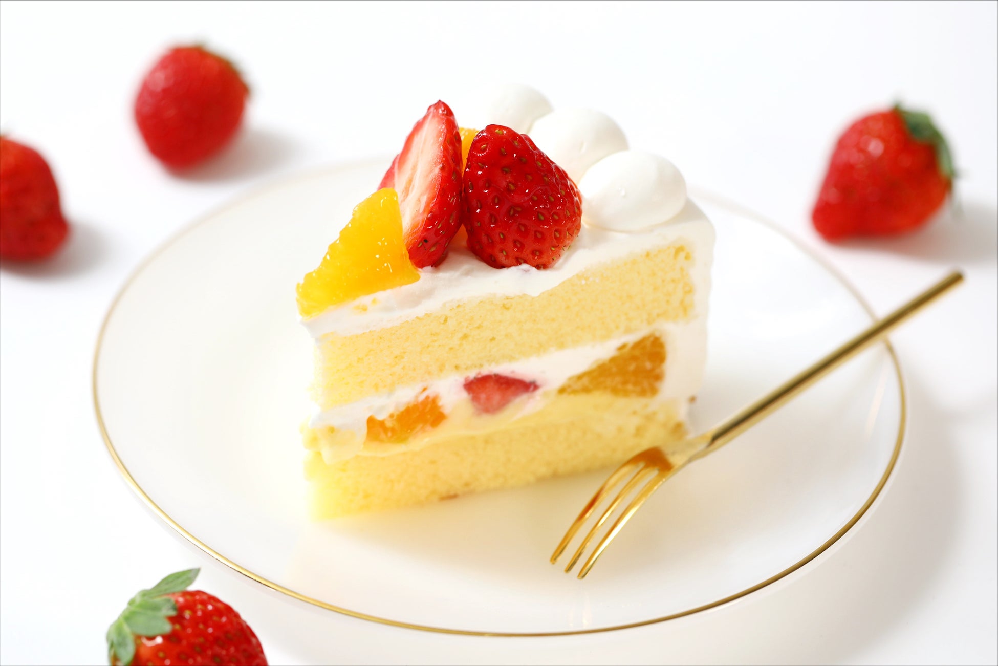 - 旬を迎えた甘い苺とみずみずしいデコポンを使用した季節のショートケーキです。ふんわりとした食感のスポンジに、フレッシュな苺とデコポン、カスタードクリームとホイップクリームをサンドしました。