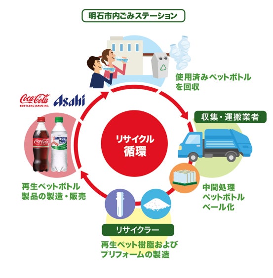 アサヒ飲料、コカ・コーラ ボトラーズジャパン、兵庫県明石市「ペットボトルの水平リサイクルに関する協定」を締結