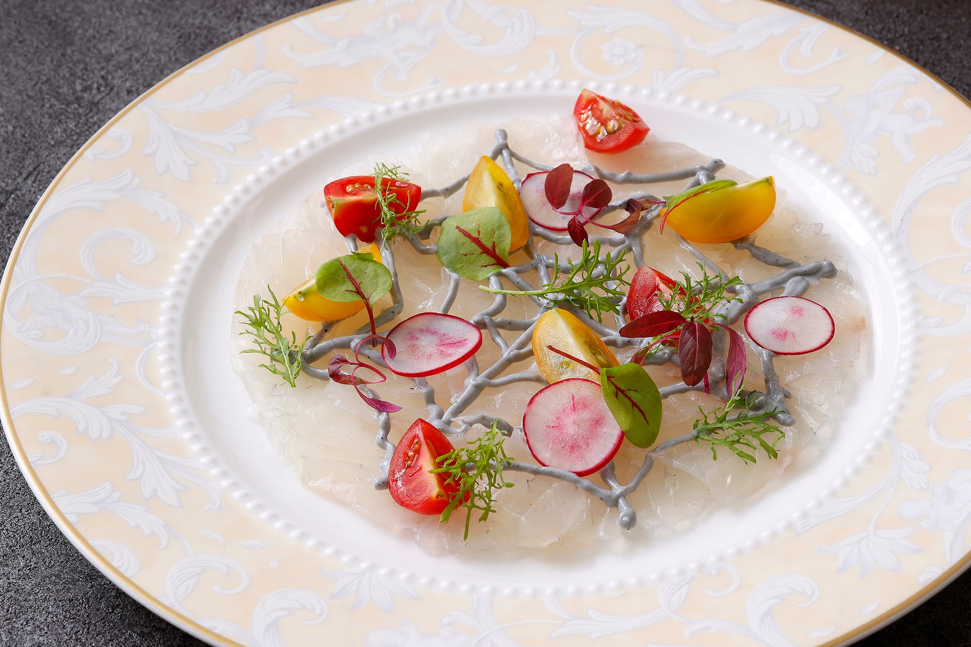 ・クモの巣仕立ての鮮魚のカルパッチョ