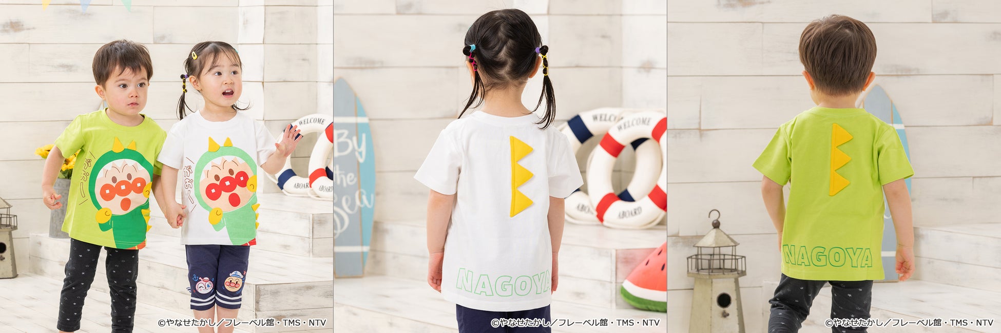 「名古屋アンパンマンこどもミュージアム&パーク」店限定の『かいじゅう半袖Tシャツ』(4,290円 税込)や、『楽しいパーク半袖Tシャツ』(4,620円 税込)、『楽しいパークスタイ』(2,090円 税込)など、ここでしか買えないアイテムもたくさん登場します。