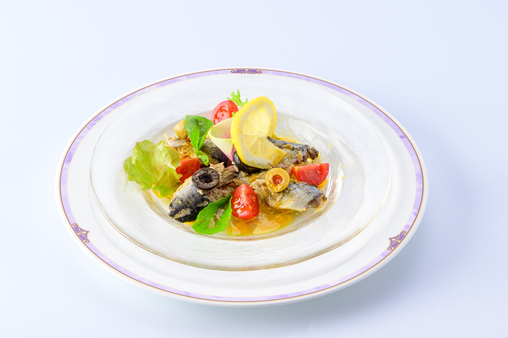 北海道産のいわしのコンフィにスパイシーなカレードレッシングが絶妙にマッチした贅沢なサラダです。