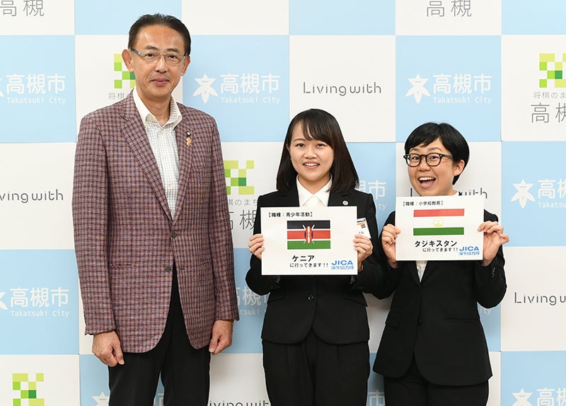 高槻市出身の浅野千裕さんと山田かおりさんがJICA海外協力隊としての派遣を市長に報告