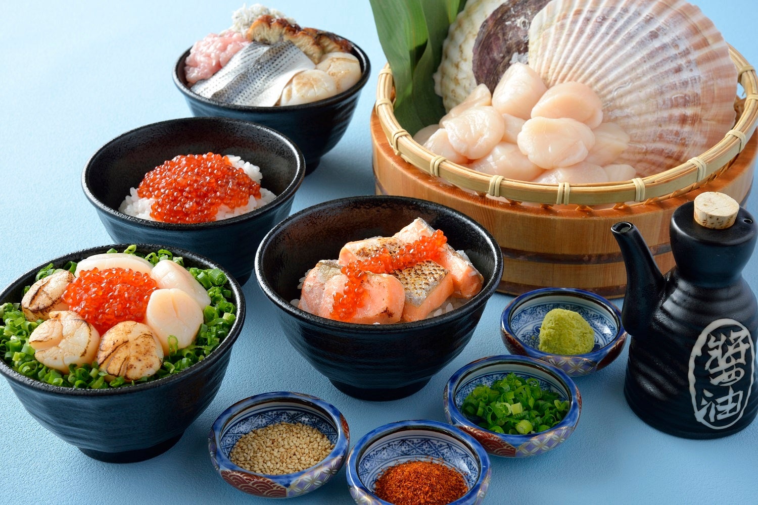 当ホテル1階のレストラン「ジョージタウン」の朝食ビュッフェは、北海道紋別産ほたての刺身やねぎとろ、小肌など、お好みでカスタマイズできる海鮮丼が人気です。こちらの朝食ビュッフェは、ご宿泊以外のお客さまもご利用いただけます。振る舞い酒とともにぜひご賞味ください。
