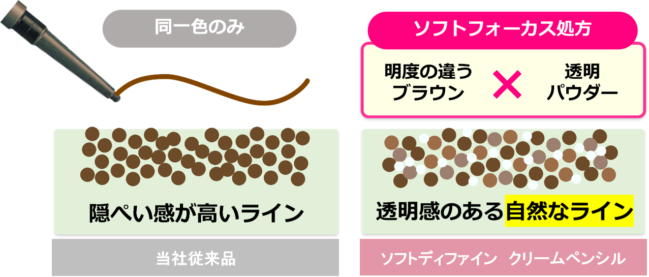 クリアパウダーをブレンドしたソフトフォーカス処方で、程よく透けて瞳色になじむブラウンで、