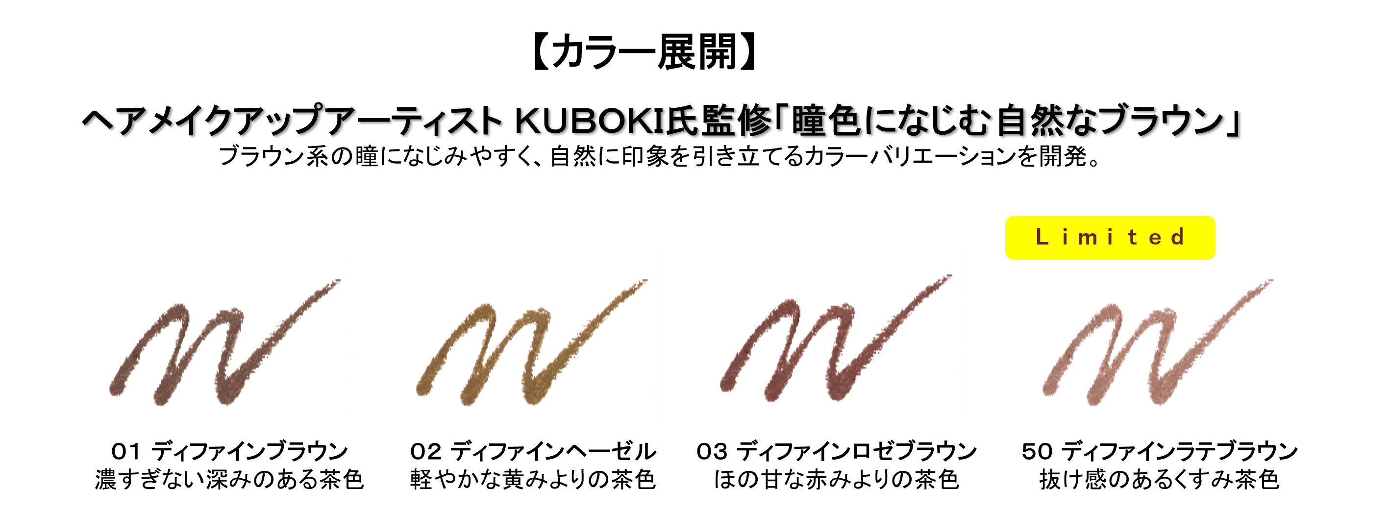 ヘアメイクアップアーティスト KUBOKI氏監修の4色から、瞳の色に合わせて選べます。