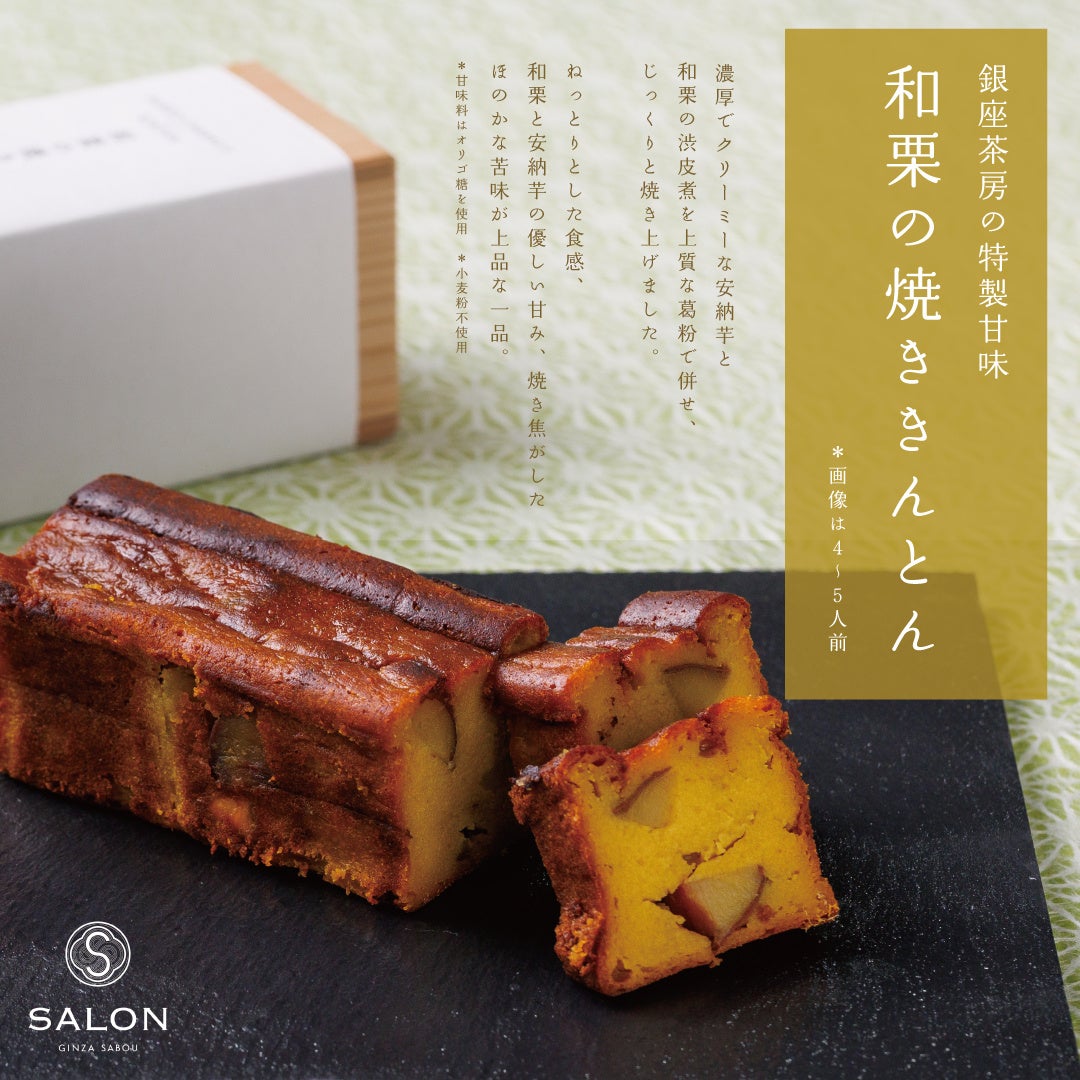 濃厚でクリーミーな安納芋と和栗の渋皮煮を上質な葛粉で併せ、じっくりと焼き上げました。ねっとりとした食感、和栗と安納芋の優しい甘み、焼き焦がしたほのかな苦味が上品な一品です。