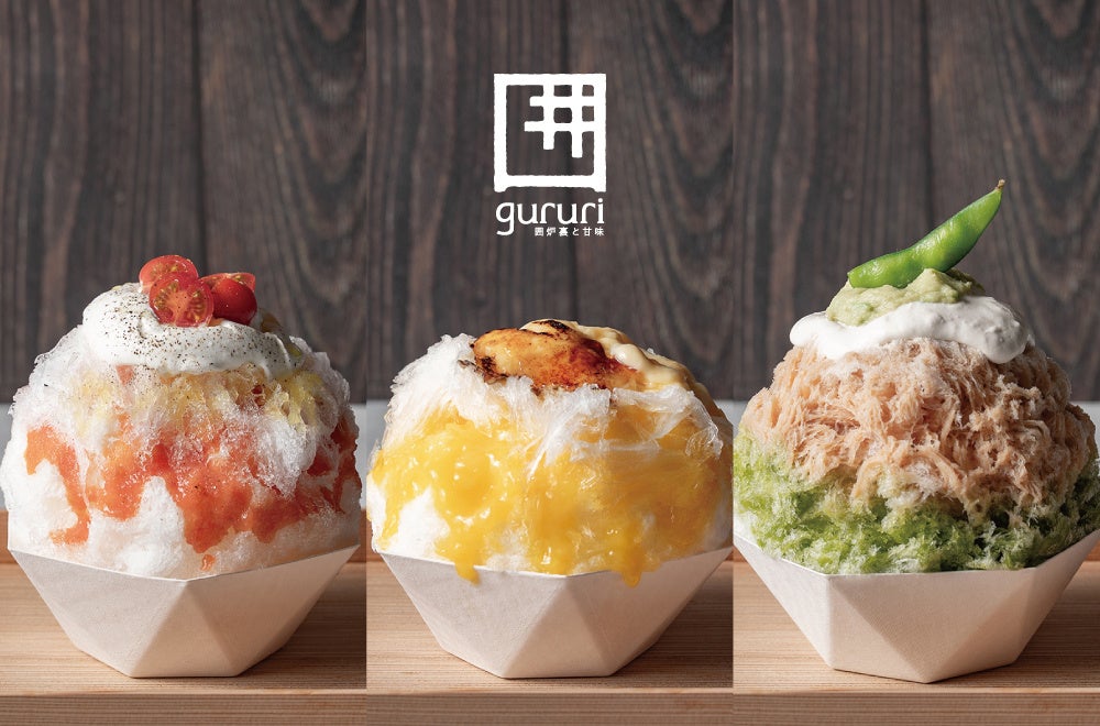 「囲炉裏と甘味 gururi」は2024年1月に長良川清流ホテル内にオープンしたカフェ。囲炉裏の空間を生かした体験型コンテンツがSNSを中心に話題を集め人気を博し、昨年より夏季限定で原田麻子氏プロデュースのもとかき氷を販売しております。