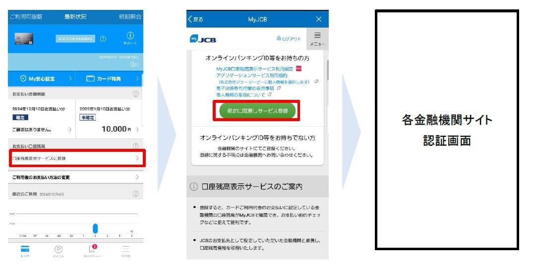 株式会社ジェーシービー (本社:東京都港区、代表取締役会長兼執行役員社長:浜川 一郎、以下:JCB)は、カードご利用代金のお支払いに設定している金融機関の口座残高をMyJCB上で確認できる「口座残高表示サービス」を2022年10月19日より開始します。