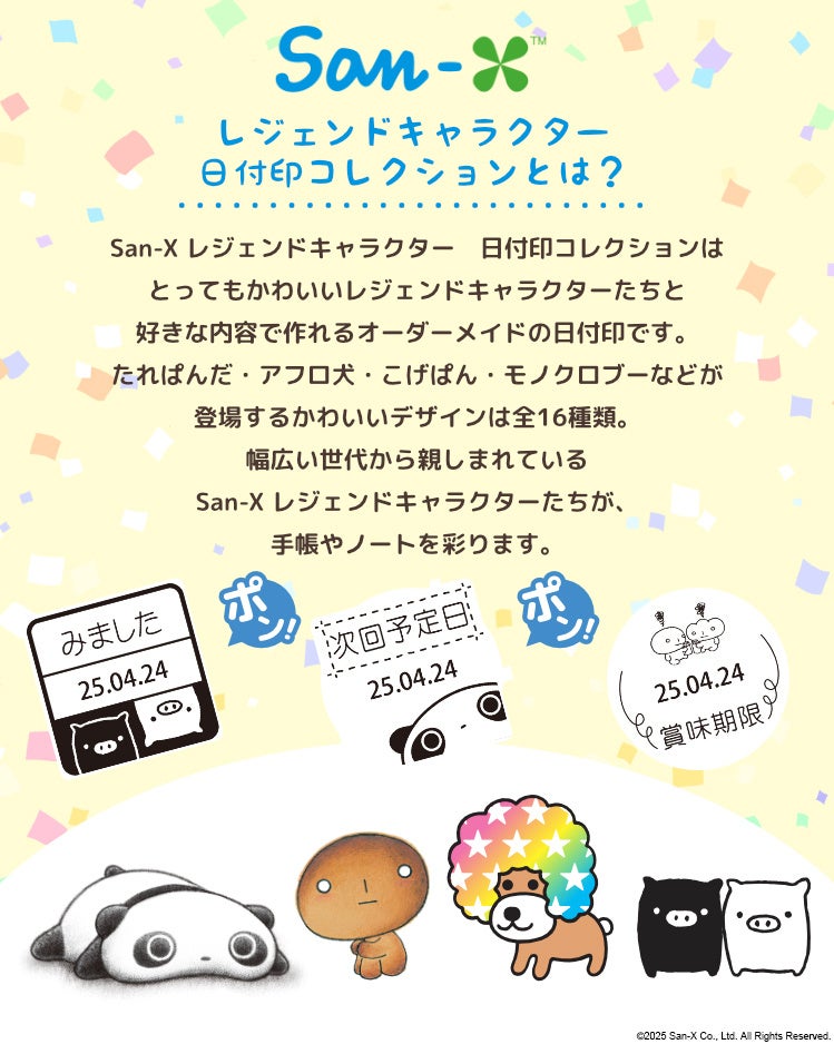 たれぱんだやアフロ犬が日付をお知らせ!手帳やノートをかわいく彩る「San-X レジェンドキャラクター 日付印コレクション」