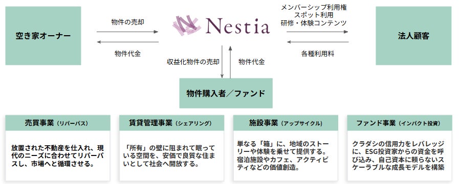 Nestiaは、そうした空き家の価値を見つめ直し、再生し、社会の中で再び循環させていくことで、新たな価値を創出していきます。Integrityの不動産投資・運用の知見と、クラダシ社のブランド力・ネットワーク力を掛け合わせ、社会的価値と経済的価値の両立する事業を育ててまいります。空き家の再生を通じて、地域に新しい豊かさと可能性を生み出し、次の時代に必要とされる社会資産のあり方を形にしていきたいと考えています。」