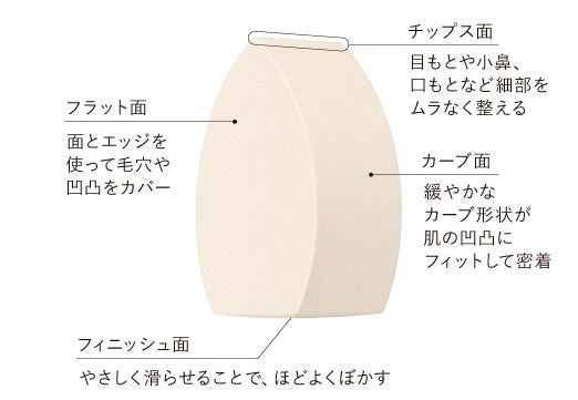 弾力があり、なめらかな肌あたりのメイクアップスポンジ。