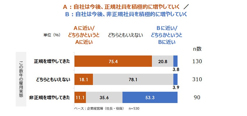 図表10.この数年の正規・非正規雇用実態と、今後の正規・非正規雇用意向