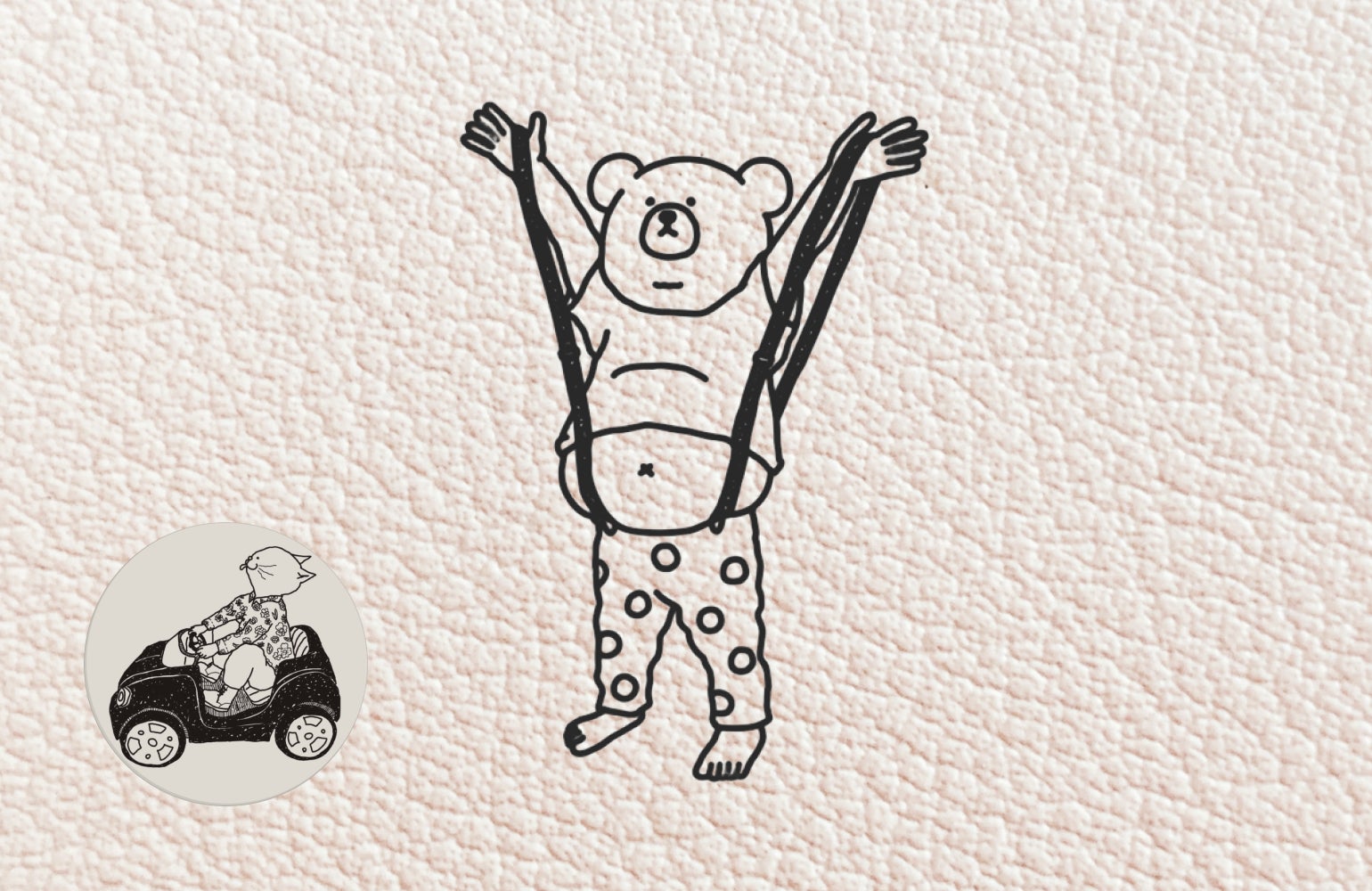今回のイラストはサスペンダーでバンザイするクマですが、無邪気な姿に愛くるしさを感じてもらえるよう想いを込めて描きました。