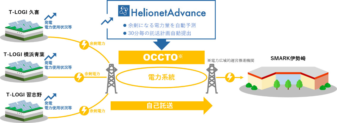 東京ガス株式会社(社長:内田 高史、以下「東京ガス」)と東京ガスエンジニアリングソリューションズ株式会社(社長:小西 康弘、以下「TGES」)は、このたび、TGESの太陽光発電サービス「ソーラーアドバンス」を活用した自己託送(以下「本取り組み」)を、東京建物株式会社(社長:野村 均、以下「東京建物」)の物流施設「T-LOGI(ティーロジ)久喜」(埼玉県久喜市)、「T-LOGI横浜青葉」(神奈川県横浜市)、「T-LOGI習志野」(千葉県習志野市)(以下「T-LOGI 3施設」)で開始しました。