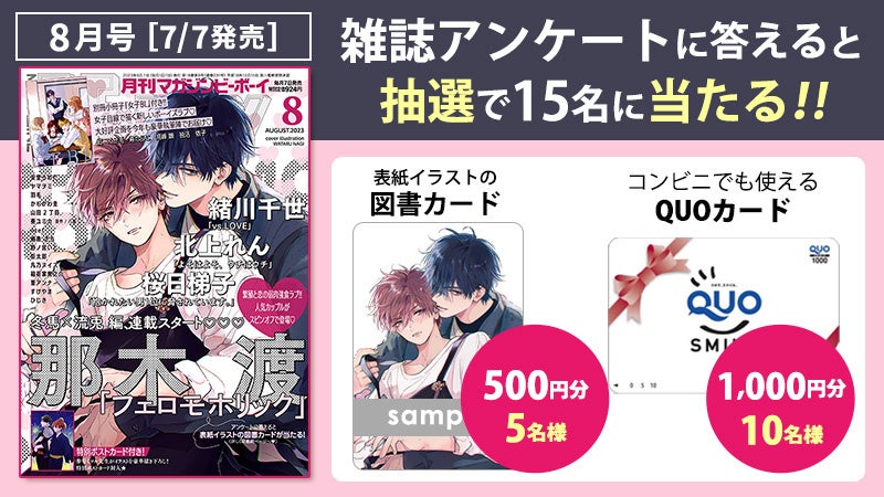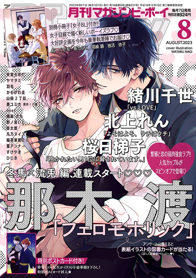 【本日発売】「抱かれたい男1位に脅されています。」(著:桜日梯子)ウサアリ編決着!「フェロモホリック」(著:那木 渡)が表紙のマガジンビーボーイ8月号は7月7日発売!