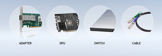 「NVIDIA Spectrum イーサネット」は、Spectrumスイッチ、ConnectX NIC、BlueField DPUとLinkXケーブル、およびネットワーキング ソフトウエアにて構成されるエンドツーエンド プラットフォームです。NVIDIA Spectrum-4スイッチと NVIDIA BlueField-3 SuperNIC ネットワーキング プラットフォーム は、AIのために構築された世界初のイーサネットファブリックであり、生成AIのパフォーマンスを加速させます。