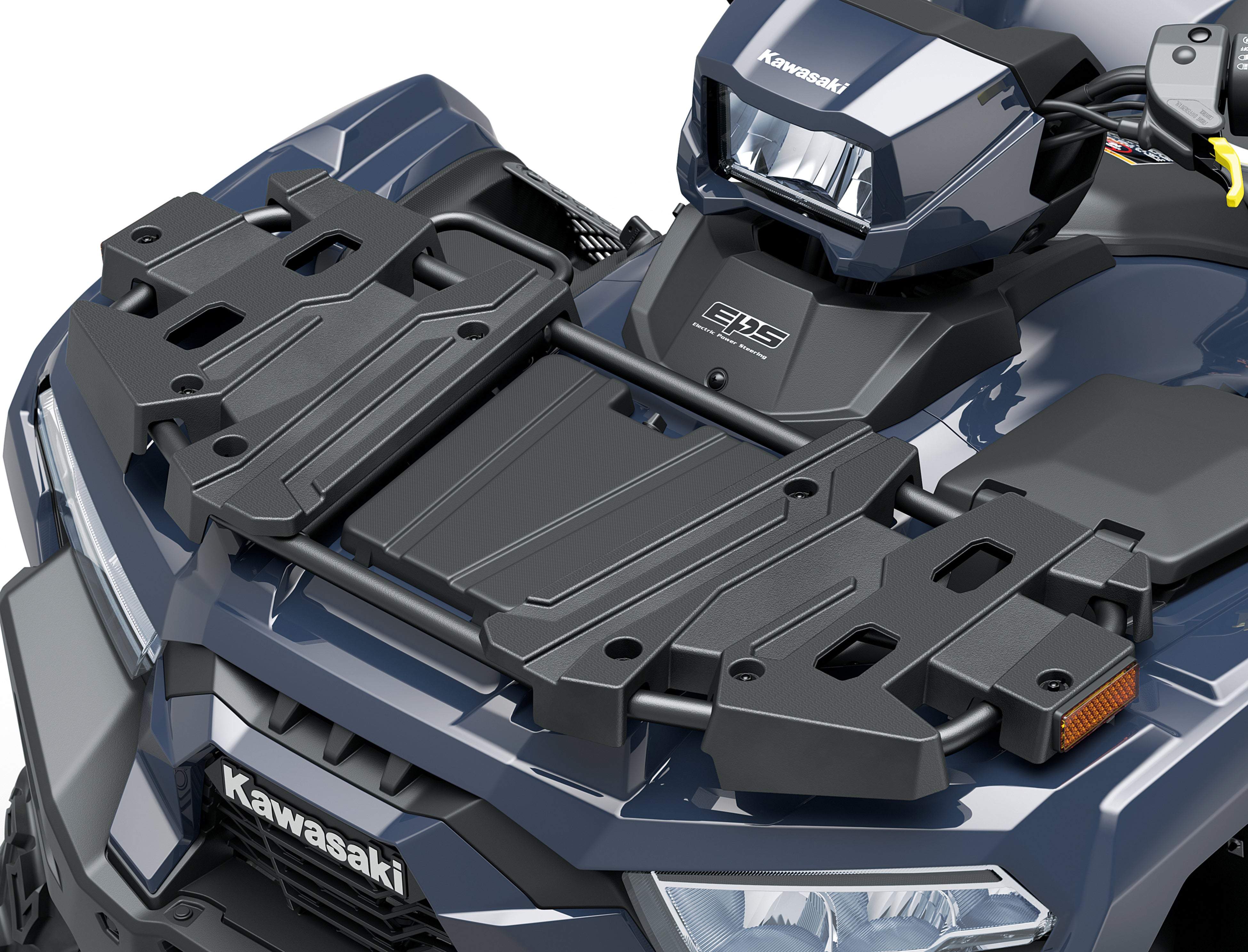 「よりスタイリッシュに、より機能的に」というBRUTE FORCEのデザインコンセプトに沿って、樹脂製キャリアカバーをデザイン。カバーにはバケツを固定するための溝のほか、KQR(Kawasaki Quick Release)の取り付けポイントを備えています。