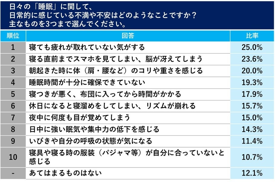ビジネスパーソンの健康を応援・サポートする、はるやま商事株式会社(本社:岡山県岡山市、代表取締役会長兼社長:治山正史)は、入学や就職、引越しなど新生活が始まる4月に向けて「新しく習慣化したいこと」について調査を実施しました※1。全国の30~50代有職者男女900人を対象としたアンケート調査で、第1位「貯金・投資」に続いて「睡眠の質の向上」「食事内容の改善・ダイエット」が2位、3位となりました。また過去に新生活の時期に「体調管理」「生活習慣」「睡眠時間」などについて不安に感じた人たちが多い結果となりました。